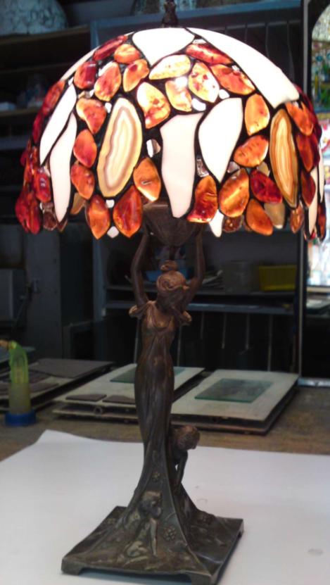 3-28 Lampka prosta agat+bursztyn