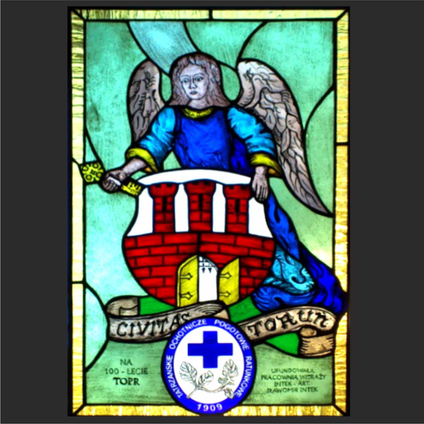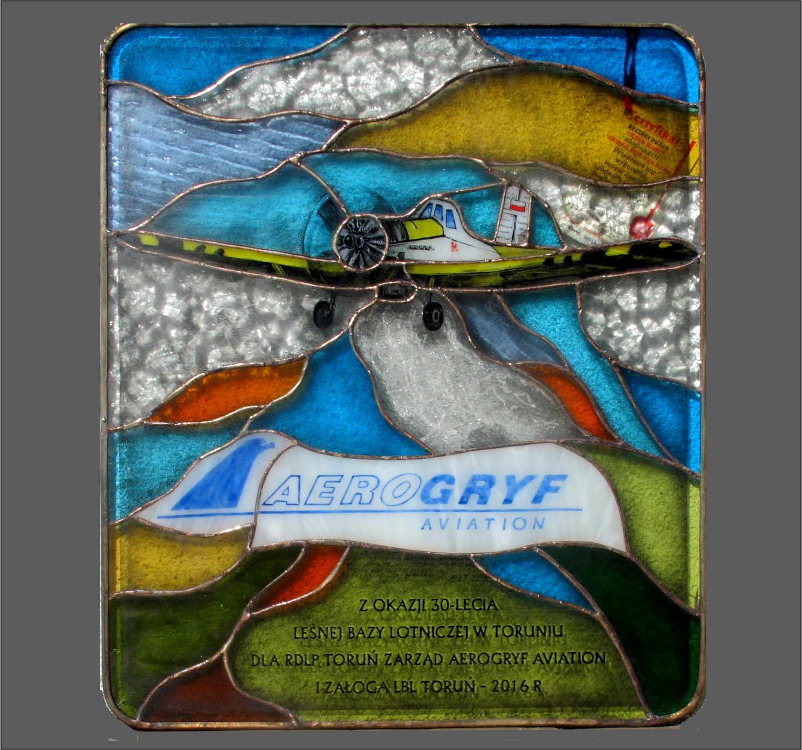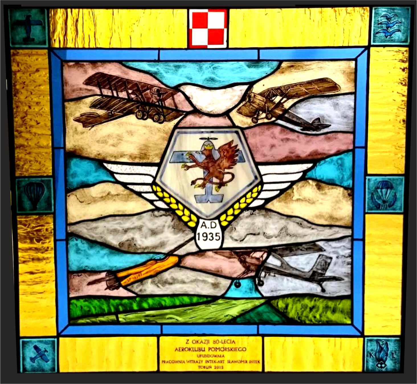 Witraż ufundowany z okazji 80- lecia Aeroklubu Pomorskiego w Toruniu