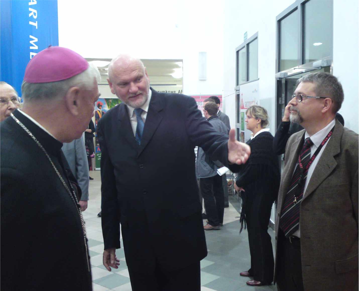 Biskup toruński i prezydent miasta przy ekspozycji pracowni witraży