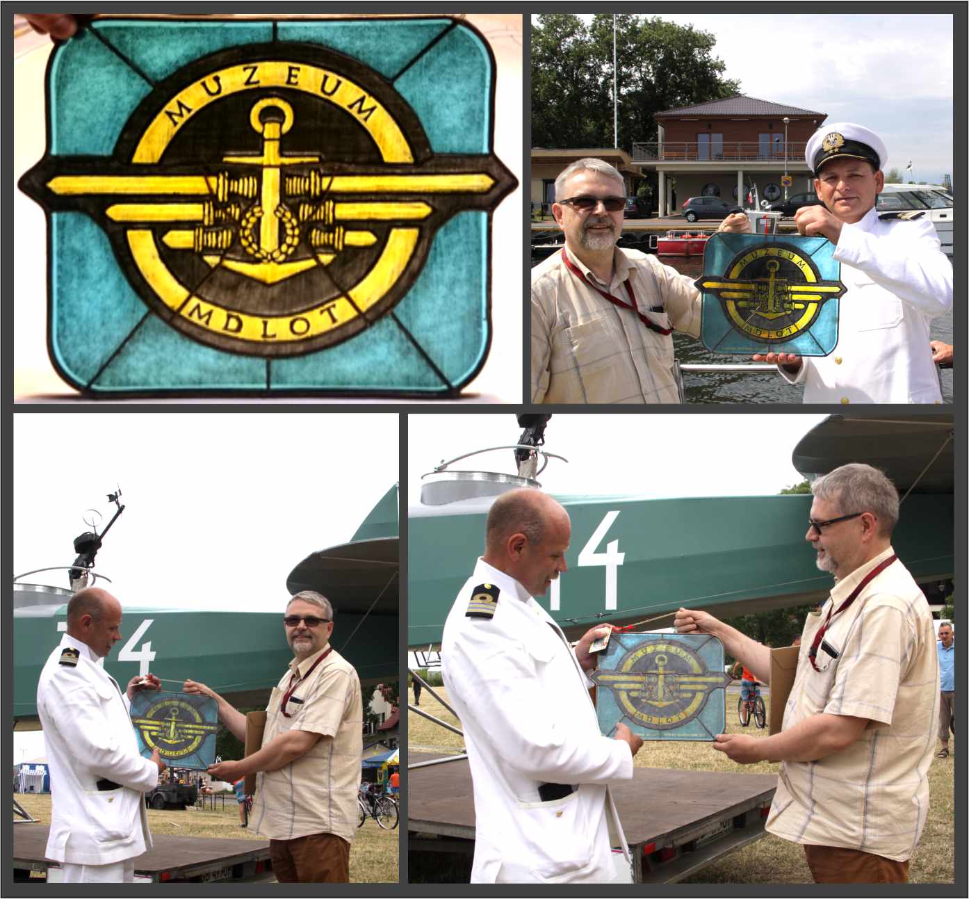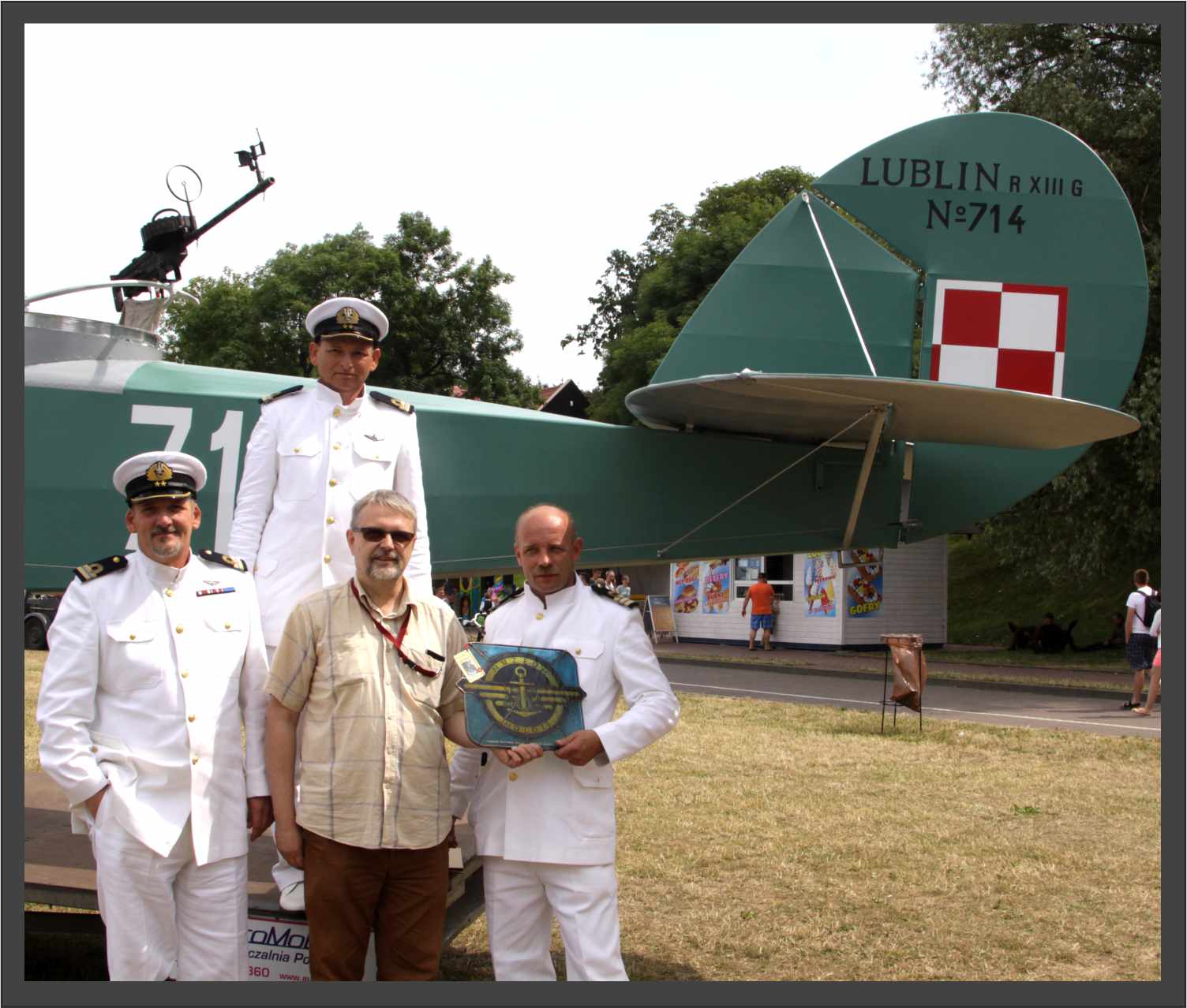 Puck – pamiątkowe zdjęcie z założycielami muzeum przy replice wodnosamolotu Lublin RXIII