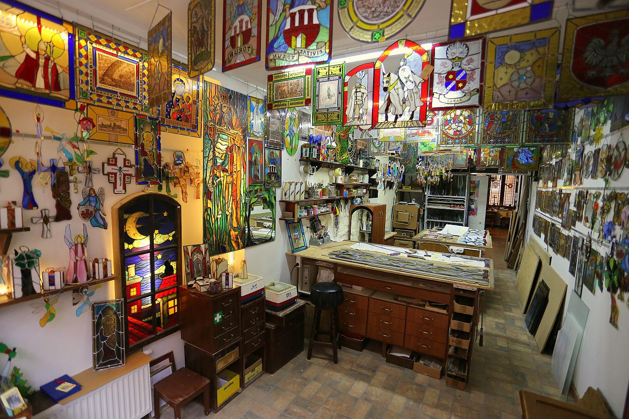 Alla bottega sono realizzate tutte le forme di vetrate artistiche (tra l’altro invetriate architettoniche, vetrate religiose, piccole forme di vetrate, illuminazione con tecnica “Tifanny”, etc.).